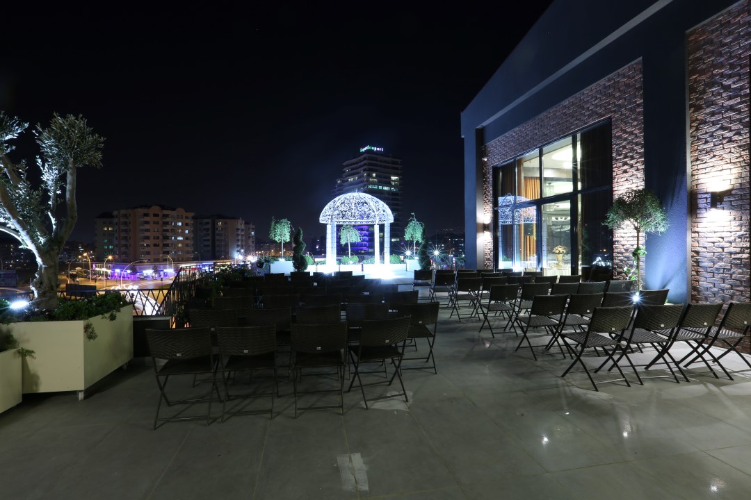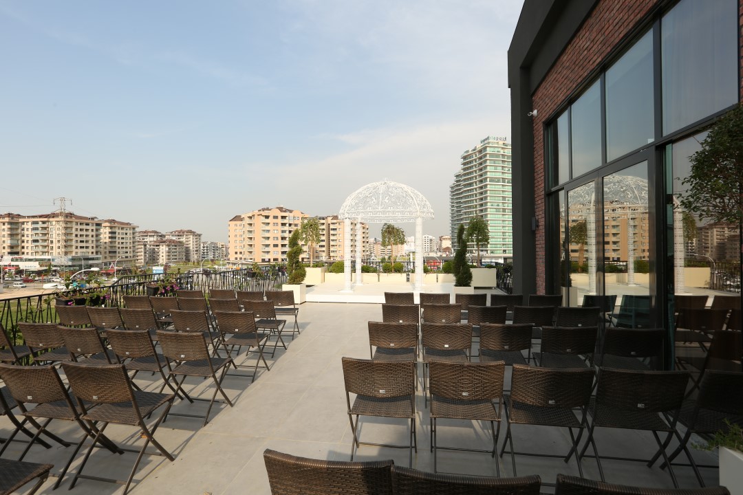 İkinci kattaki terasımızda, panoromik şehir manzarası eşliğinde, botanik olarak hazırlanmış, gazebosu, tiyatral sandalye düzeni, özel gelin yürüme yolu ve bistroları ile hizmet verecek olan verandamızla hizmetinizdeyiz.